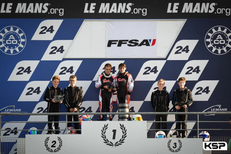 L’équipage 161 Team Tom Thomas Normandie de Tom Cottin (Sodi/Rotax) et Thomas Elie (Sodi/Rotax) s’imposait finalement après 87 tours avec le meilleur tour en course, 9’’ devant l’équipage 166 YCR de Julien Freze (Alpha/Rotax) et Robin Doucet (Birel ART/Rotax) qui conservait sa 2e place malgré une double pénalité. Le n° 160 Lorimier Racing d’Arthur Lorimier (MS Kart/Rotax) et Eloan Pivard (Birel ART/Rotax) terminait 3e à deux tours, NRT 24 suivant à 5 tours de la tête.
