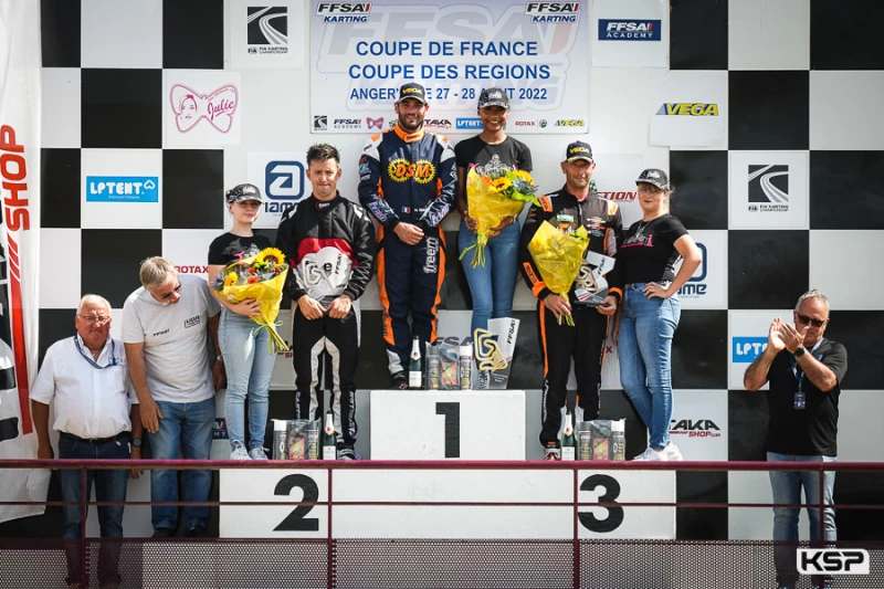 La 3e finale Master et Gentleman lançait l’après-midi de dimanche en Coupe de France à Angerville. Le trio de Master Maxime Bidard (Redspeed/Iame), Alexis Castellon (Redspeed/Iame) et Ludovic François (OTK/Iame) menait la danse devant le Gentleman Frédéric Ostier (Pantano/Iame). Celui-ci s’emparait rapidement de la 3e place au détriment de François. Bidard se détachait en tête à partir du 4e tour en enchainant les meilleurs temps, tandis que François s’efforçait de reconquérir la 3e position. Jérôme Cruchet (Tony Kart/Iame) mettait la pression sur Ostier pour le leadership Gentleman. A la mi-course, Bidard possédait 1,7’’ d’avance sur Castellon. Cruchet trouvait l’ouverture sur Ostier. Bidard assurait la Coupe de France Master en fin de course pour remporter sa 3e victoire avec le meilleur tour et une avance de 1,6’’ face à Castellon. François terminait 3e devant les Gentleman Cruchet et Ostier.