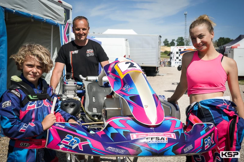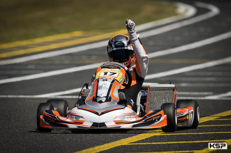 En tant que l’un des plus jeunes du plateau, Many Nuvolini (Formula K/Iame) a impressionné par sa capacité à rouler parmi les mailleurs pilotes Minime. Constant dans le top 3 derrière les deux favoris, il était là au bon moment quand un accrochage devant lui le consacrait Champion de France de manière précoce. Théo Battisti (Formula K/Iame) s’était montré très rapide en tête de la catégorie au 2e rang des manches et vainqueur de la préfinale. Il menait pendant la plus grande partie de la finale avant de se faire attaquer dans l’avant-dernier tour. Il tentait de répliquer dans le dernier tour, mais sa manœuvre audacieuse se terminait hors-piste avec son rival à quelques mètres de la ligne d’arrivée. Antoine Grisel (Kosmic/Iame) redressait la barre après une qualification difficile. 6 places regagnées dans les manches, 4 autres en préfinale et il partait 5e de la finale. Il réalisait le meilleur tour et montait sur la 2e marche du podium pour conclure un meeting positif. Lucas Bonhomme (Sodi/Rotax) avait bien commencé par le 5e chrono et une victoire en manche 1 avant de perdre du terrain au départ de la manche 3. Il réalisait une superbe finale en atteignant la 3e position avec un gain de 6 places à son actif. Jayden Soupiron (Formula K/Iame) était rentré dans le top des manches samedi soir. Malheureusement un incident en début de préfinale ruinait ses espoirs. Il regagnait courageusement 5 positions en finale pour intégrer le top 10. Andrea De Peretti poursuit avec beaucoup de sérieux son apprentissage en Minime au milieu de pilotes expérimentés. Il pouvait se féliciter d’avoir réussi à se qualifier pour les phases finales parmi les 63 participants.