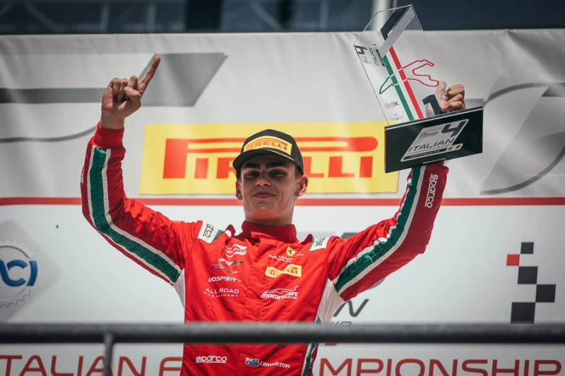 Avec l’épreuve française du Paul Ricard prévue en juillet, l’étape belge de Spa Francorchamps représentait l’une des deux sorties hors de son pays d’origine pour le Championnat d’Italie de F4 certifié FIA. James Wharton attendait avec impatience ce nouveau rendez-vous pour confirmer qu’il fait bien partie des candidats au titre dans cette saison 2023 au niveau extrêmement relevé. Sur ce circuit surnommé “le toboggan des Ardennes”, et considéré comme le plus beau du monde, le jeune espoir Australien de la Ferrari Driver Academy n’a pas déçu. Il a signé le meilleur temps des deux séances de qualification et a remporté avec panache les deux premières courses du meeting. Sa 3e place en Course 3 lui a permis d’inscrire un nombre de points important au classement général, dans lequel il a drastiquement réduit l’écart avec le leader.